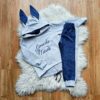 Wyjątkowo piękny dziecięcy zestaw dresowy z motywem pasków i napisem SYNEK MAMUSI. Zestaw składa się z bluzy oraz spodni.