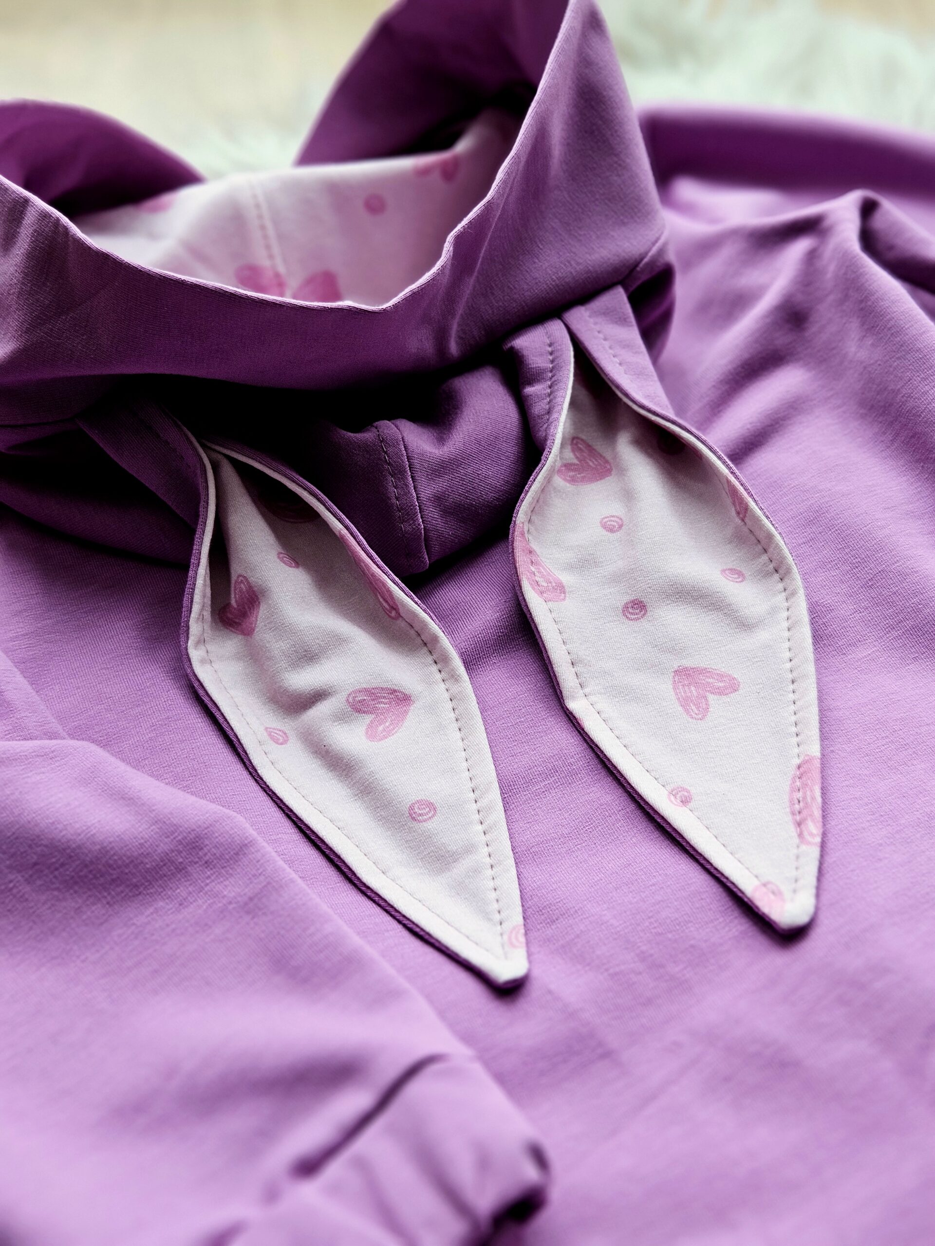 Bluza ma wszyte do kaptura urocze uszy. Dół bluzy można regulować sznurkiem.